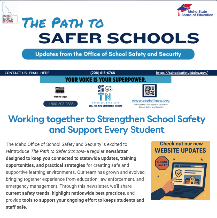 The 2016 Idaho Legislature created the Idaho Office of School Safety and Security to support the efforts of Idaho public schools as they work to create safer learning environments.